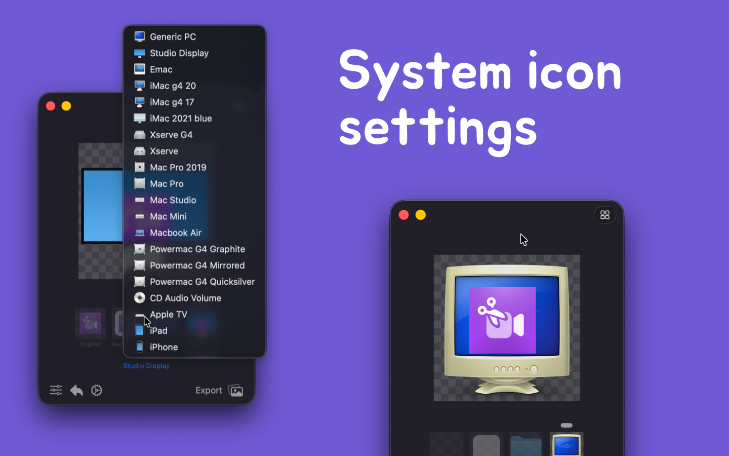 Effortlessly create and personalize icons from images, supporting macOS and iOS icon generation, folder icon creation and setting, and icon format conversion features.