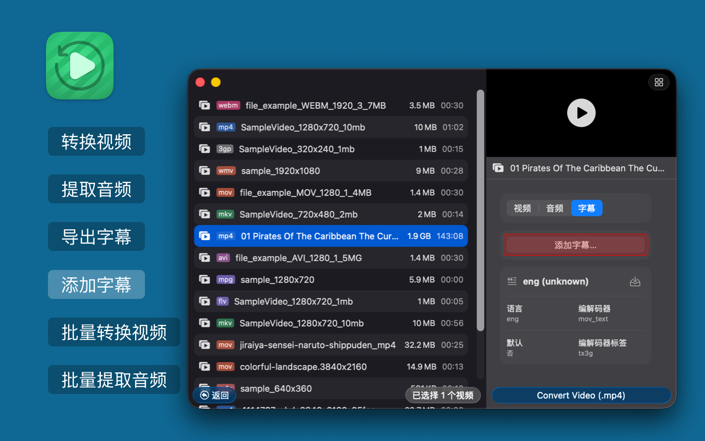 ■ 添加字幕 - 在视频中嵌入字幕,支持多种字幕格式,增强观看体验。